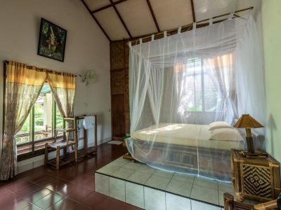 Every cottage has a mosquito net, veranda with a sitting area and a bathroom with a toilet and mandibak. Some rooms have an Indonesian squat toilet. In our restaurant, an Indonesian breakfast (rice, noodles, pancakes, eggs, fruit, …) is served. Lunch, dinner, fresh fruit juices and other drinks are available too. Elephant riding, tubing, and the jungle walking, all start from our guesthouse